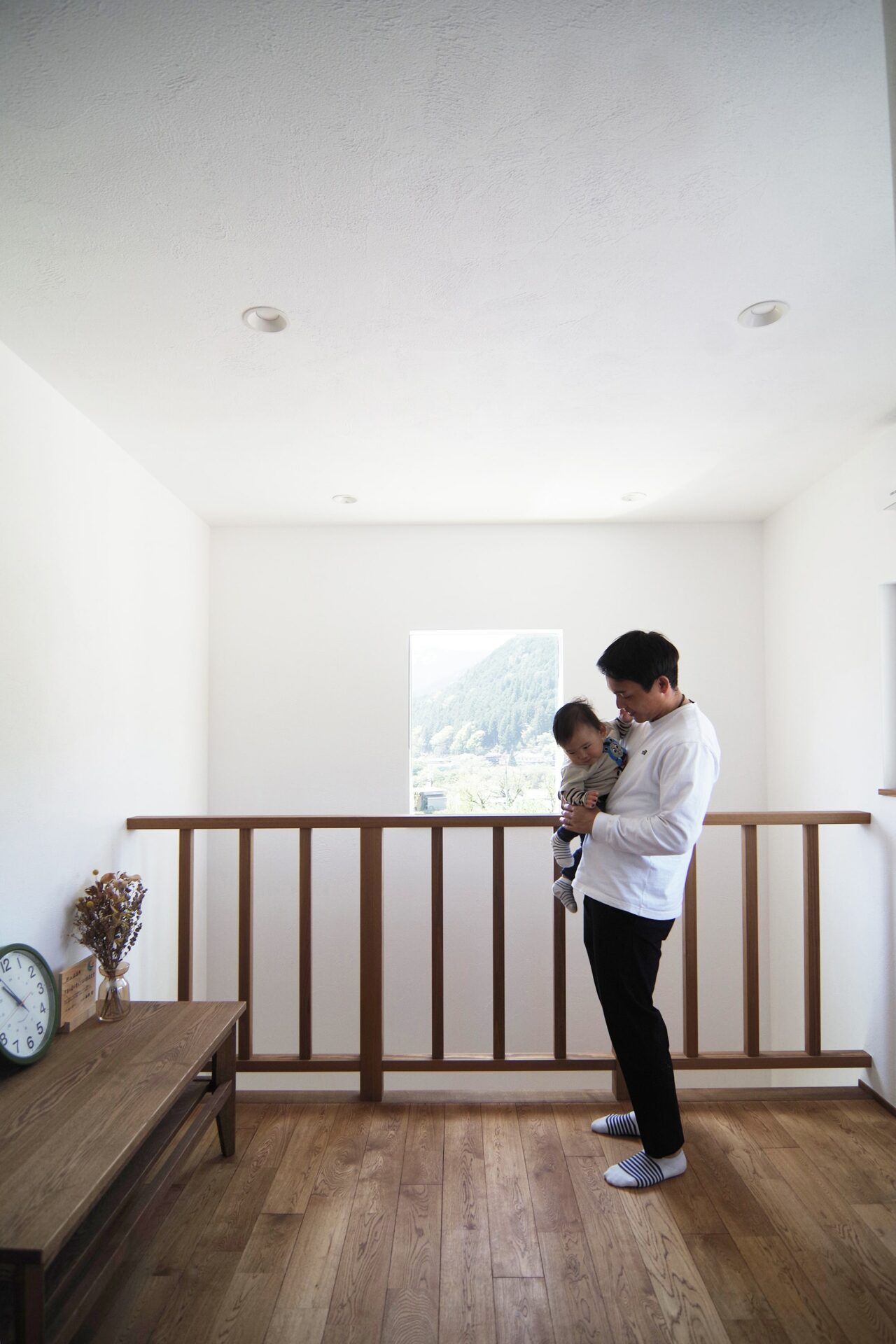 美しい下呂の風景を二階ホールの窓が切り取り、まるで絵画の様です。