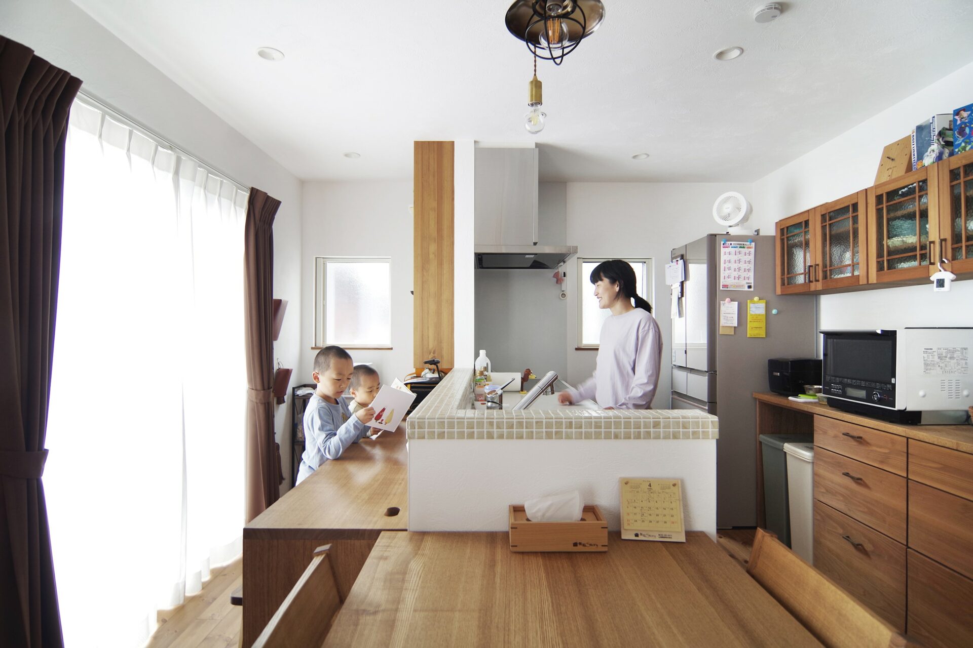 キッチン前にあるスタディカウンター。家事をしながらお子様の様子を見ることができます。