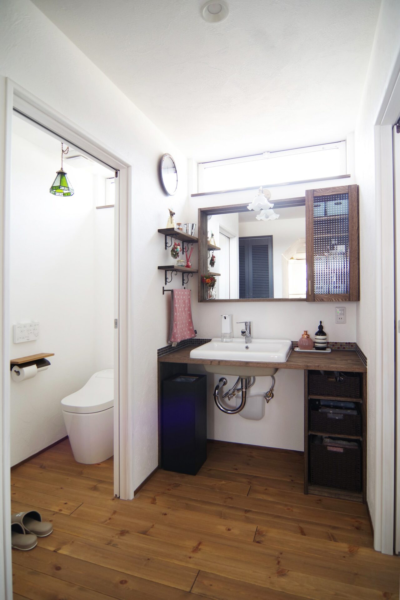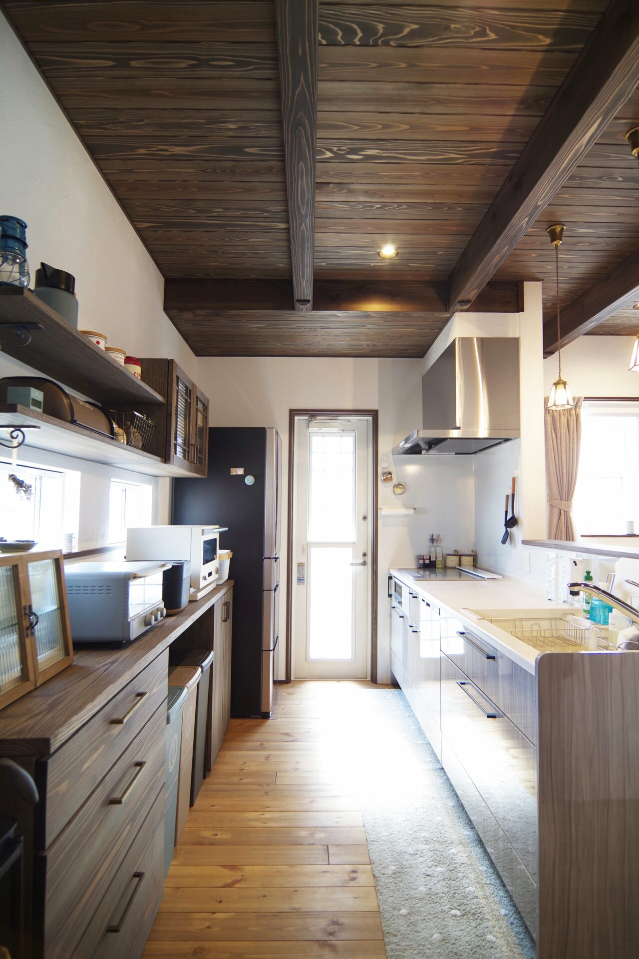 オリジナルの造作家具や、ご自身でアレンジを加えた家具、照明に至るまでオーナー様のこだわりが詰まった世界観です。