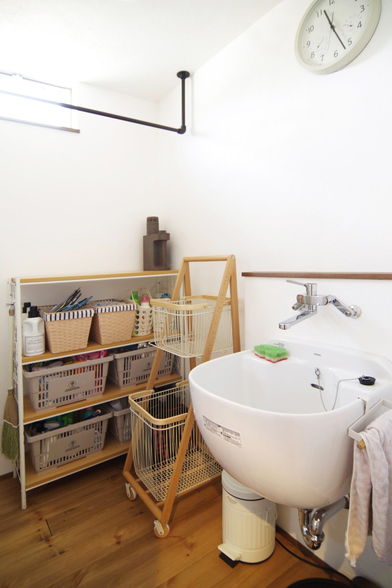 オリジナルのキッチン背面収納。置かれている小物もとてもおしゃれです。
