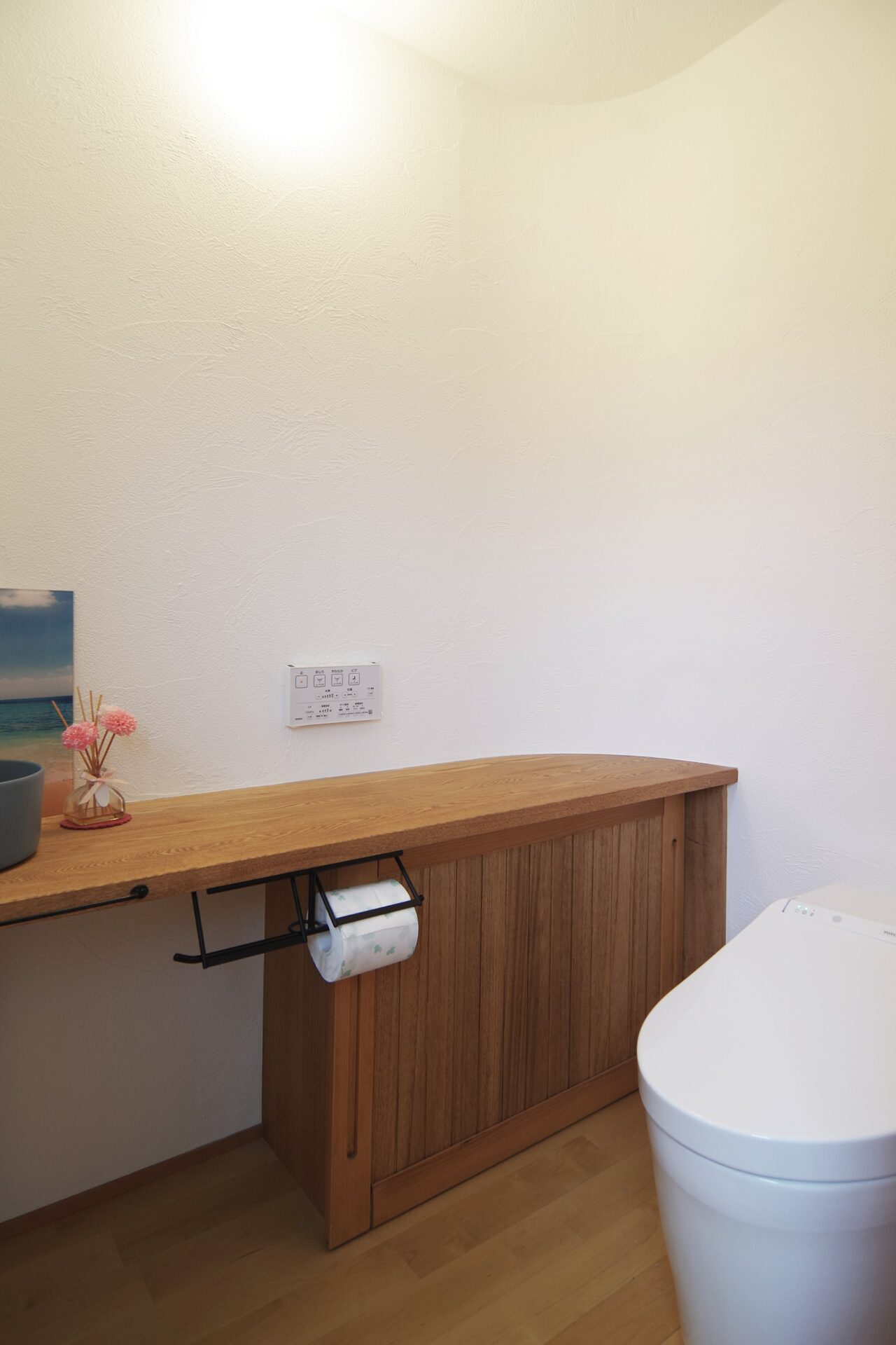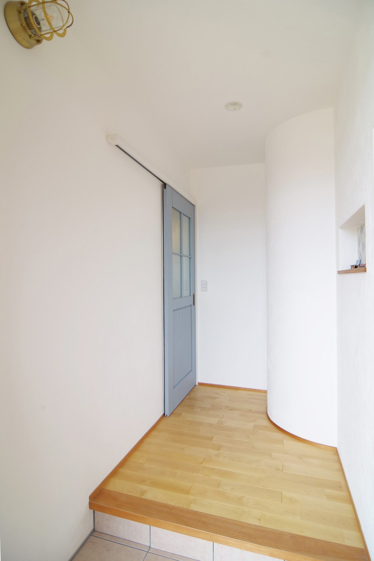 トイレの壁のカーブの裏側は玄関ホールの良いアクセントに。