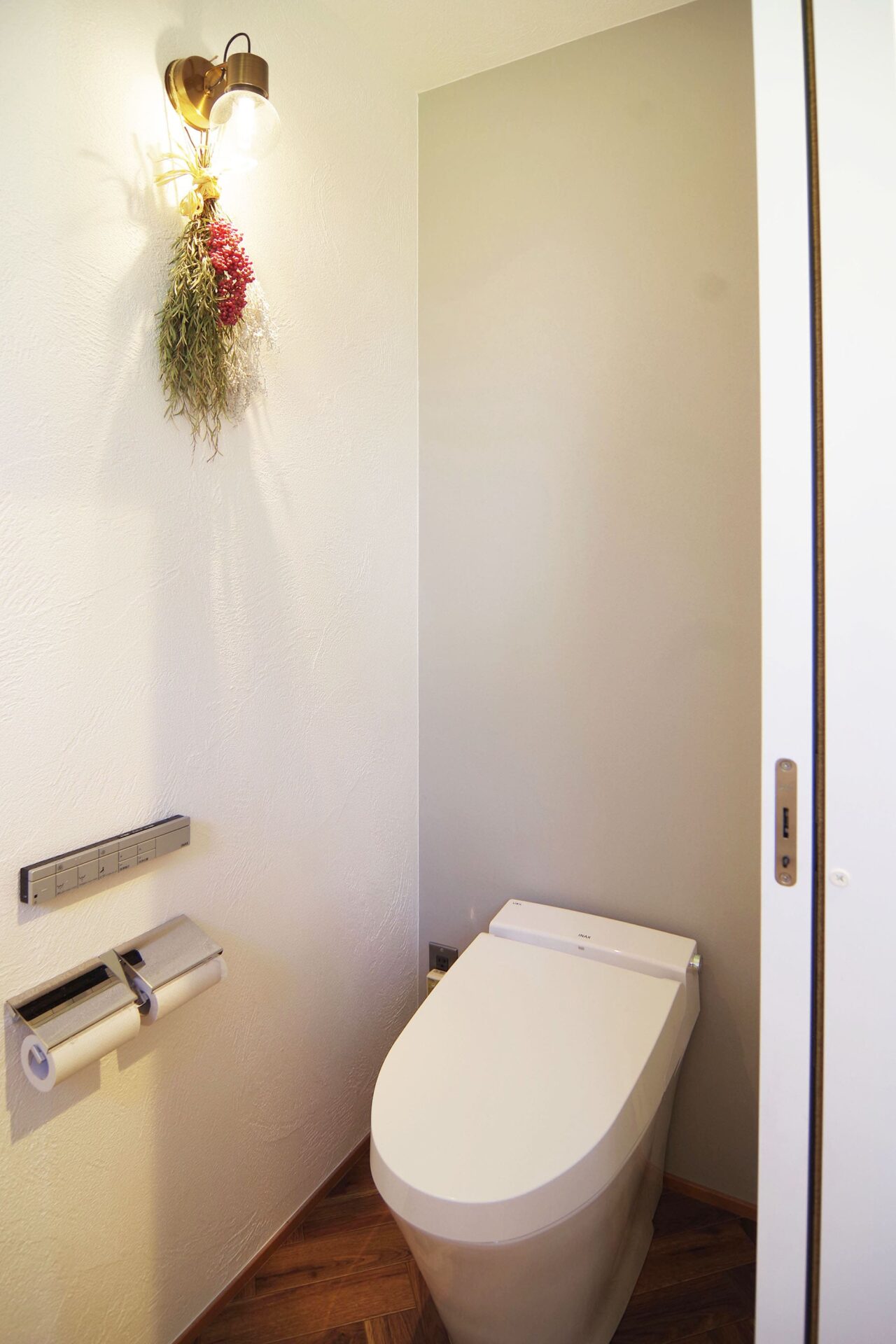シンプルなトイレにもスワッグがさりげなく飾られるだけでとてもおしゃれ^^