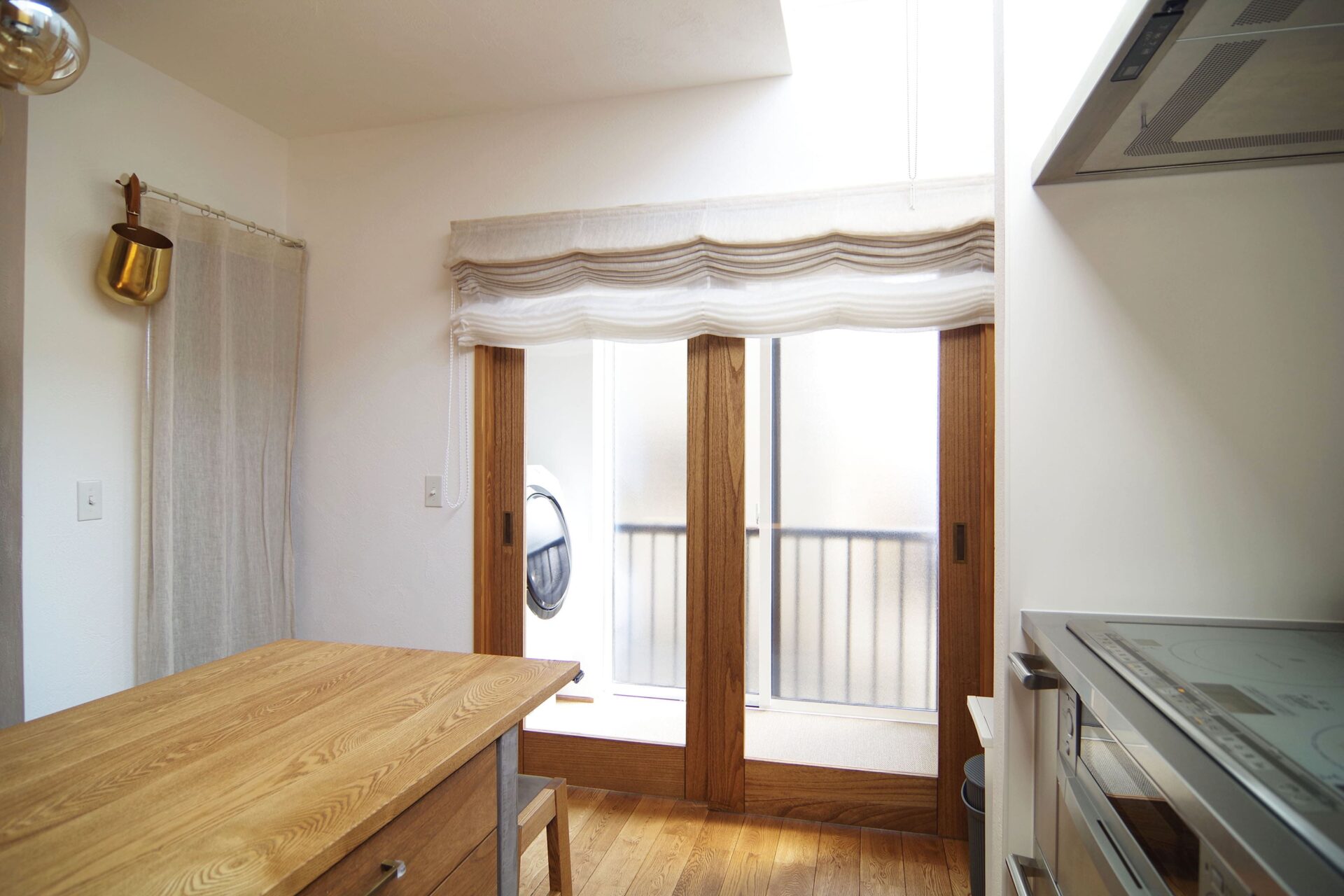 虫がニガテなため、洗濯物が干せるサンルームを作ったのもT様のこだわりです。洗ったらすぐに干せるように洗濯機を置いたことで家事効率がUPしたそう。